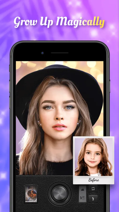 Magic Cam presents a simulated camera in a realistic style, and provides aging effect, cartoon effect, and a series of lovely stickers.