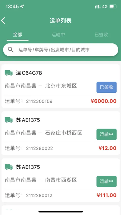 2.在货主选择司机的报价之后,运单会进入【运单列表】-【运输中】状态。