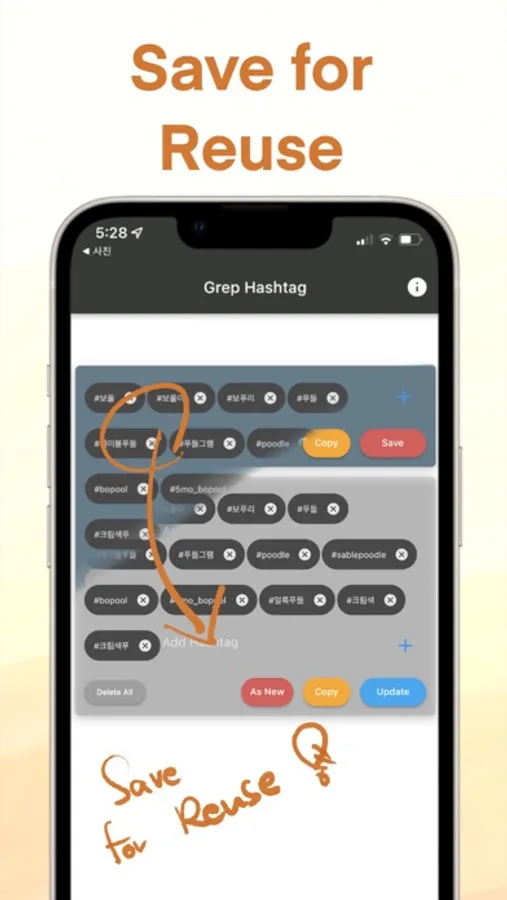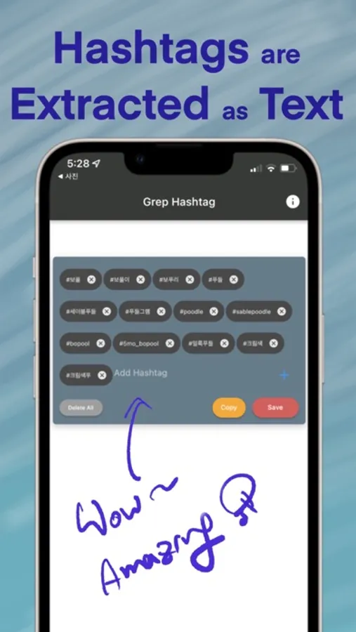 On Instagram, you always meet the lovely Hashtags, but it's too many and long for typing. At that time, just make a screenshot and share it to "Grep Hashtag". Amazing!!