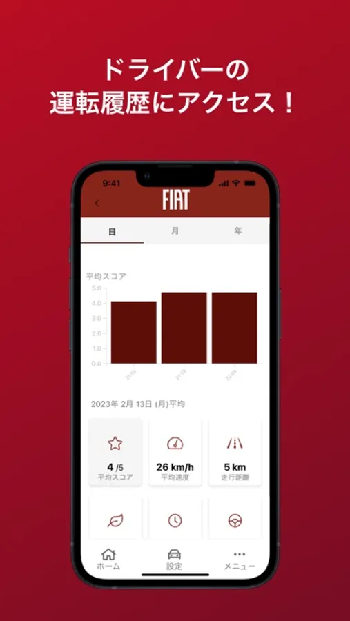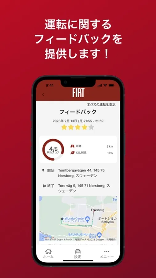 FIAT CIAO DRIVEは、FIAT 500eドライバーのためのアプリです。アプリをFIAT 500eにつなげて、あなたの運転を測定し、スマートドライブを実践することができます。FIAT CIAO DRIVEでは、AIがあなたの運転を分析し、安全でスマートに運転ができているかを評価します。自分の運転を比較し、改善点を知ることで、運転パフォーマンスの向上につなげましょう。また、アプリ上で開催されるFIAT CIAO DRIVEコンペに参加すると、他のFIAT 500eドライバーと運転スコアを競うこともできます。