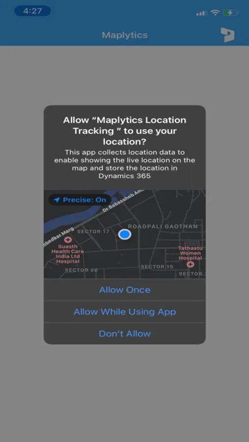 When the user opens the app for the first time then it will ask Dynamics 365 (CRM) credentials and once the user enters credentials, it logs in to CRM programmatically thereafter. First ask for user consent regarding location access. When the user moves on the field, it tracks the user's live location and programmatically updates the location in one of the tables in Dynamics 365. In this app, it will fetch the user's live location, show it on the map in mobile and update that location in Dynamics CRM. It requires background services as it needs to track the user’s live location even while the user is traveling to update the same in Dynamics 365.