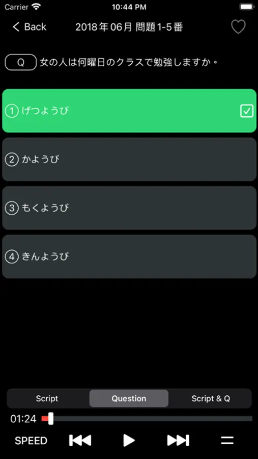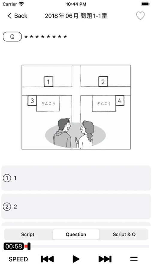 This is a Japanese listening practice app for the Japanese Language Proficiency Test N5.