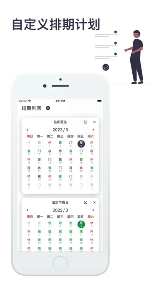 排班助手是一款多功能排班计划工具,以天为单位进行排班。