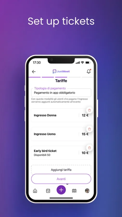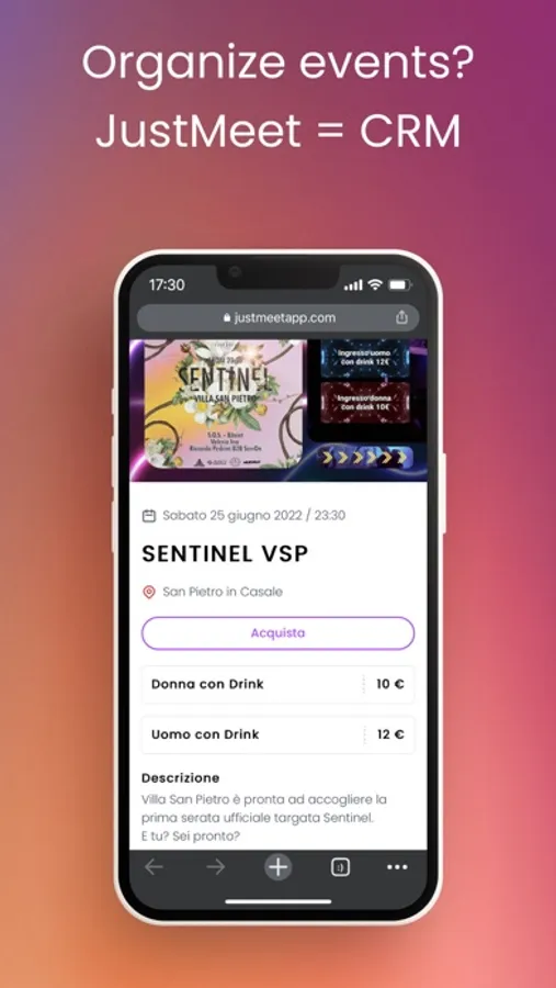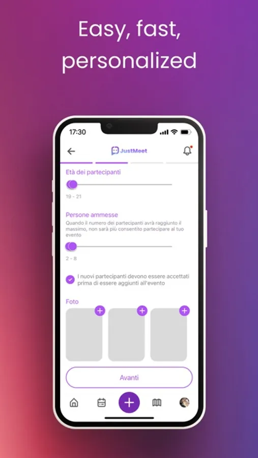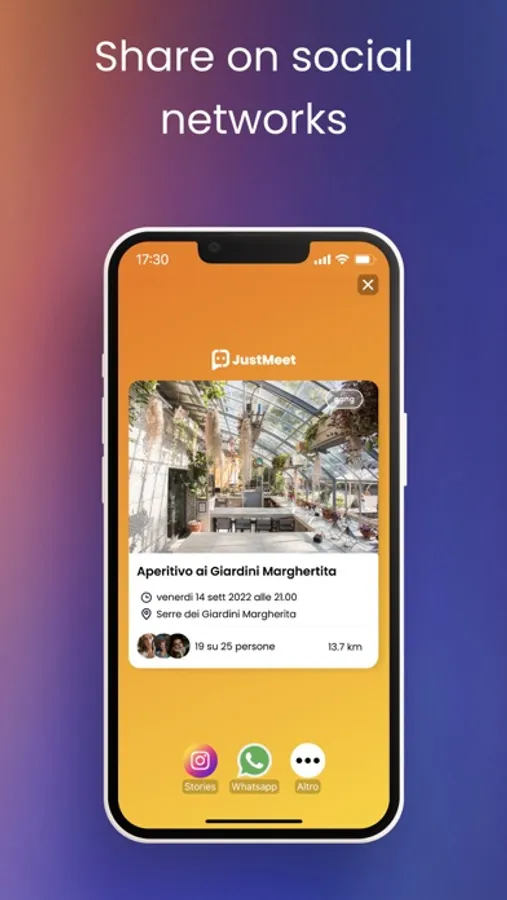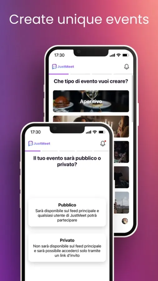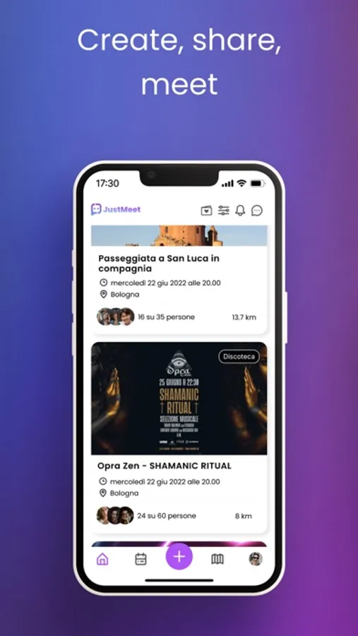 With JustMeet you can create events and invite other users to join. Or you can participate in events created by them.