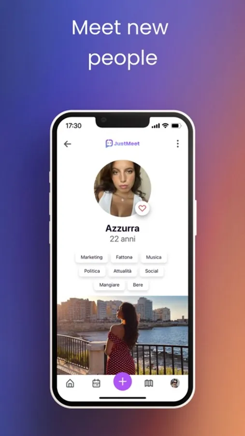 JustMeet's main goal is to let you meet new people while having fun. We believe that sociability is a fundamental aspect of the well-being of the individual and the community. We are committed to encouraging interaction between people to stimulate fun, the birth of new ideas and many values that can only exist when you are in a group.