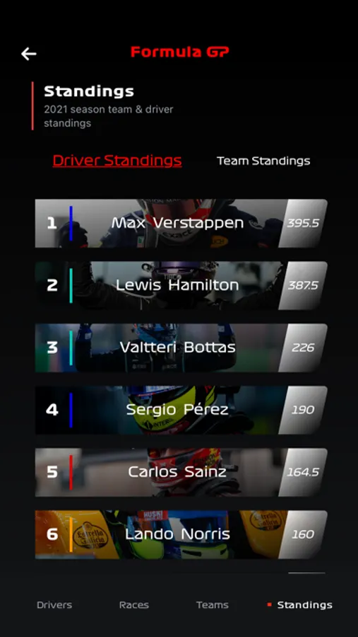Keep up to date with the latest driver & constructor standings, upcoming races and see the drivers stats head to head!
