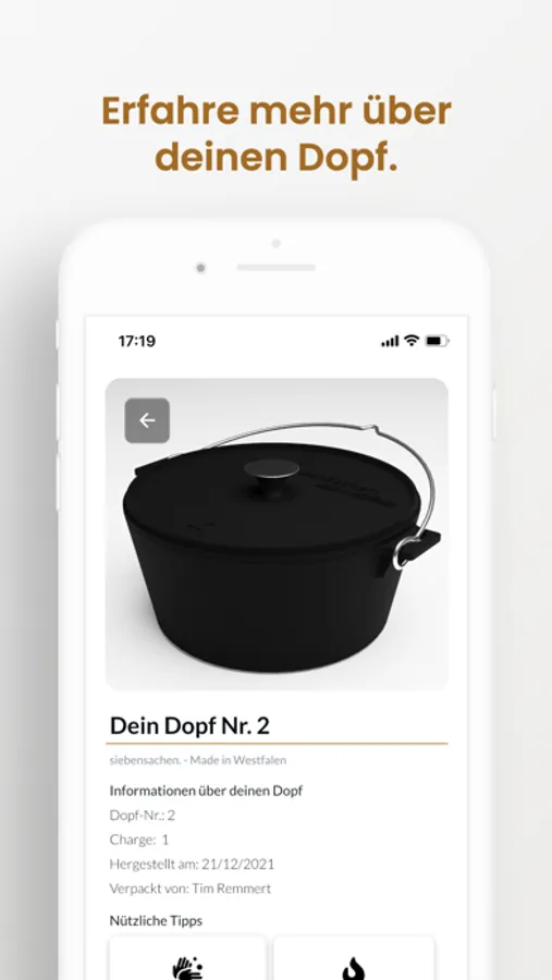 deinDopf bietet dir eine Plattform für alle Gusseisen-Liebhaber. Hier wird alte Kochtechnik mit modernen Möglichkeiten kombiniert, um alles aus dem Dopf rauszuholen. Funktionen, die das Kochen erleichtern. Oder Rezepte als Inspiration für das nächste Kunstwerk aus dem Dutch Oven. Als Käufer eines Siebensachen. Dopf X erhälst du zudem nützliche Tipps, wie du mit deinem Dopf umgehst.