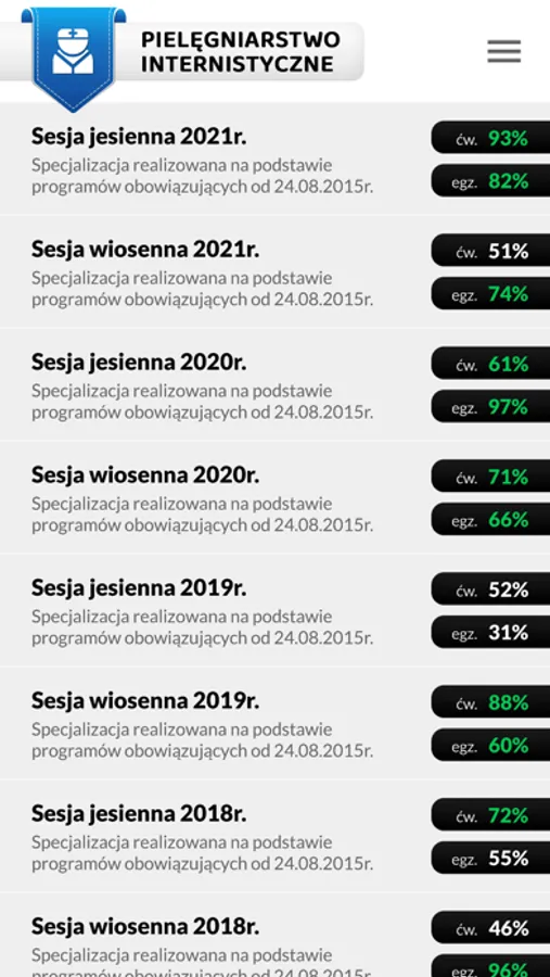 Nasza aplikacja zawiera wszystkie testy zaczynając od sesji wiosennej 2018r. (Specjalizacja realizowana na podstawie programów obowiązujących od 24.08.2015r.)