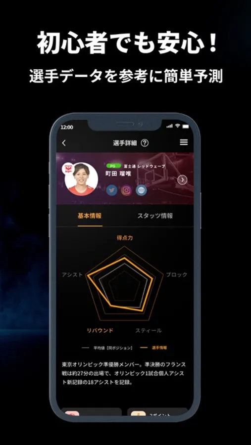 【選手の実際の活躍を予想できるスタッツデータ搭載!】