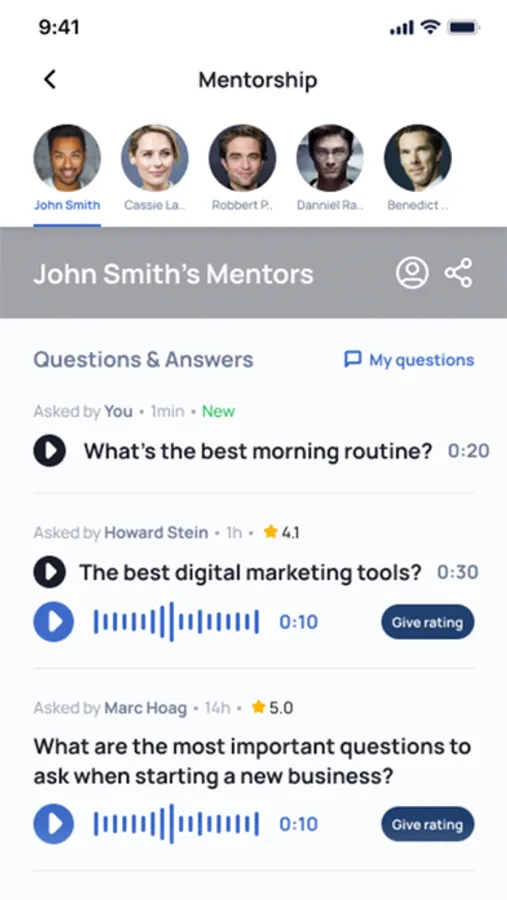 Once you download the app, you can open an account, purchase your credits and immediately access thousands of mentors and select anyone suitable to answer your questions. After you type out a question, you just sit back and we will send you a notification when a tailored answer in a voice-note from the mentor becomes available.