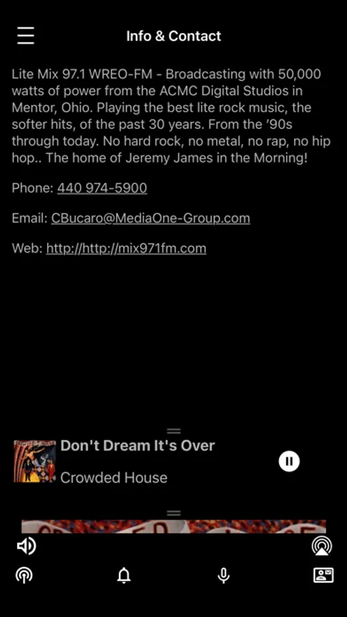 Lite Mix 97.1 WREO-FM - Broadcasting with 50,000 watts of power from the ACMC Digital Studios in Mentor, Ohio. Playing the best lite rock music, the softer hits, of the past 30 years. From the ’90s through today. No hard rock, no metal, no rap, no hip hop.. The home of Jeremy James in the Morning!