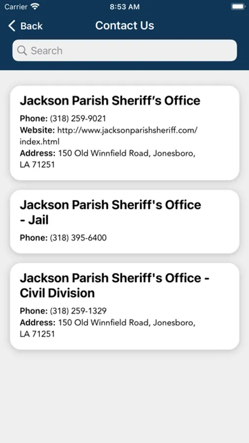 The Jackson Parish Sheriff’s Office mobile application is an interactive app developed to help improve communication with area residents. The Jackson Sheriff App allows residents to connect with the Jackson Parish Sheriff’s Office by reporting crimes, submitting tips, and other interactive features, as well as providing the community the latest public safety news and information.