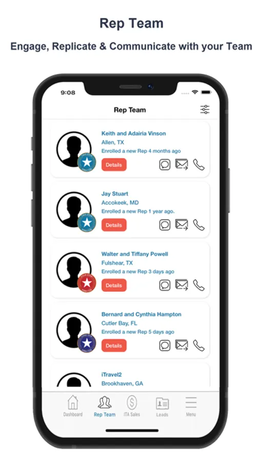 You can also build and manage a Rep Organization with the tools built into the App.