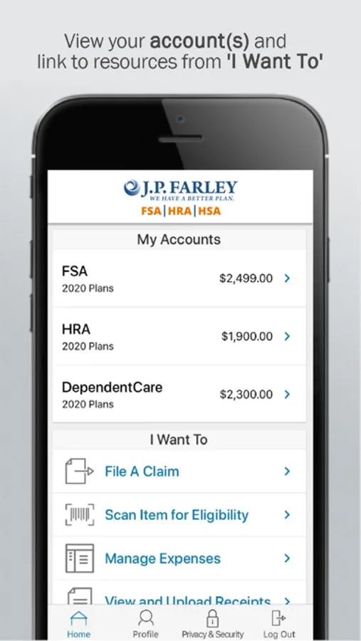 J.P. Farley offers members direct access to FSA, HRA, and HSA benefits on the go!
