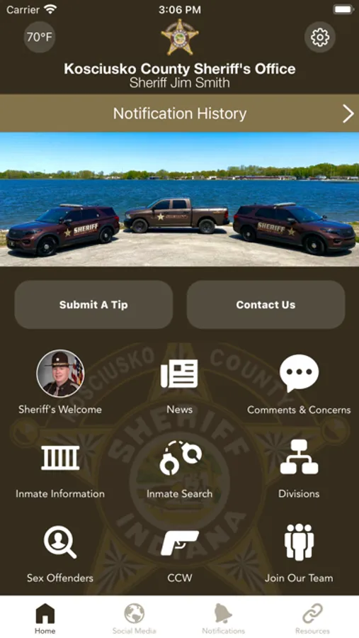 The Kosciusko County Sheriff’s Office mobile application is an interactive app developed to help improve communication with area residents and visitors. The Kosciusko County Sheriff App allows residents to connect with the Kosciusko County Sheriff’s Office by offering interactive features, as well as providing the community the latest public safety news, information and tip submission. This app is not intended to be used as a reporting platform, please call 911 in an emergency or (574) 267-5667 for a non-emergency incident.
