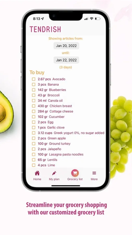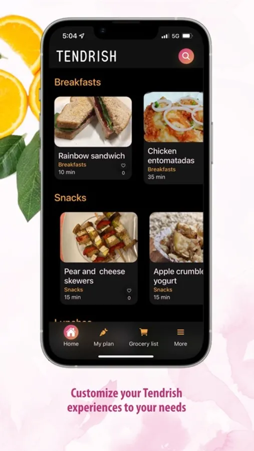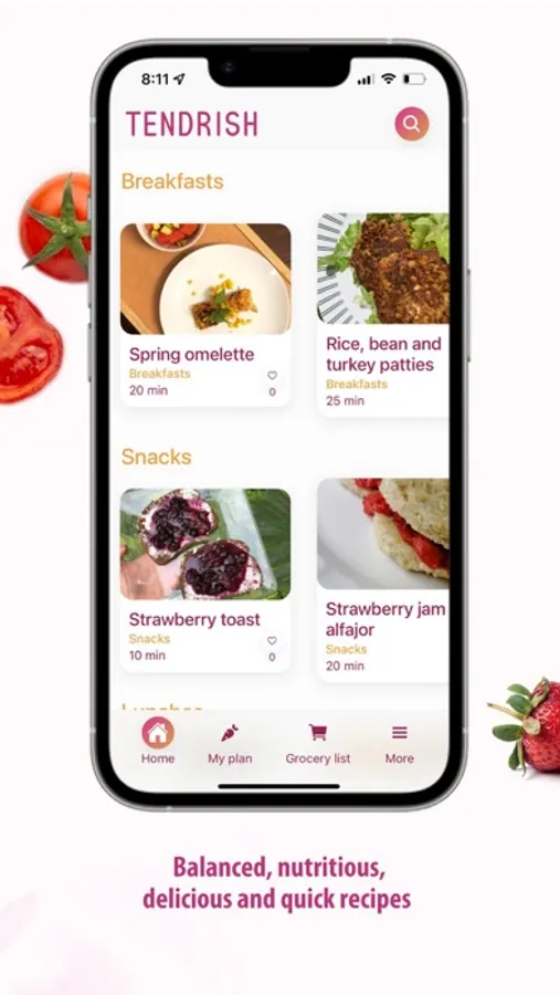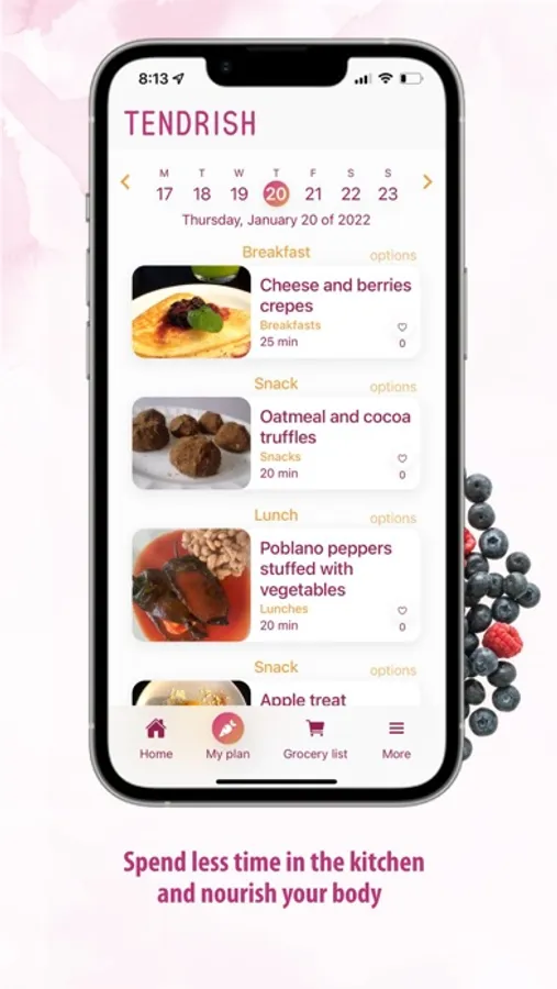 The Tendrish application is the planning tool that helps you nourish your body in an intuitive, flexible and personalized way. It's designed in an easy and practical way, to spend the least time on meal prep for the week.