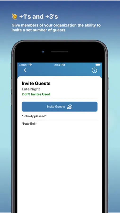 Making events is simple with DoorList, as you can add users individually or add an entire organization. Further, you can allocate entries to others so that they can add their date or friends themselves. Event guests or organization members don't even need to be on DoorList yet-- you can add them by phone number so that all of their events and organizations will be there when they make an account. You can even repeat past events by duplicating the entire list!