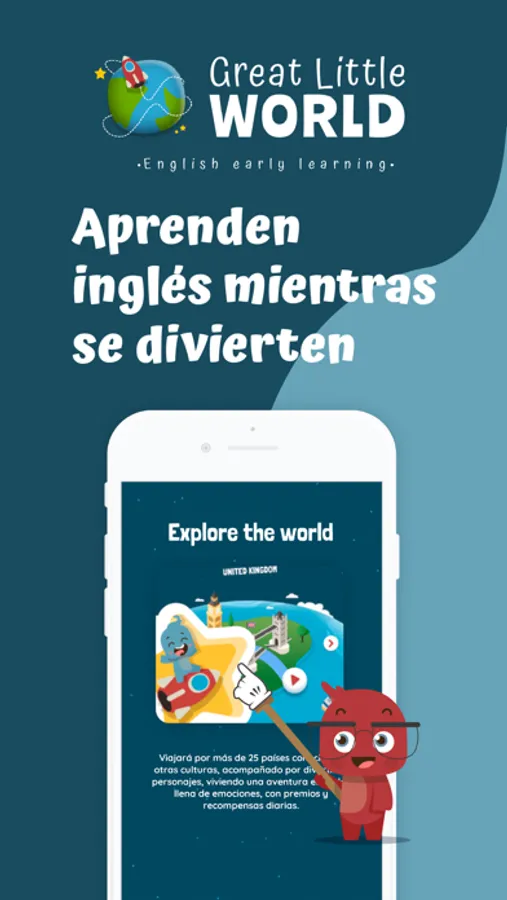 Aprender inglés nunca ha sido tan fácil. Con la app de Great Little World, los niños y niñas podrán aprender un nuevo idioma de la forma más fácil y divertida posible. Mediante nuestro sistema de aprendizaje guiado, diseñado por los mejores docentes especializados en edades tempranas, los niños y niñas podrán practicar vocabulario, gramática, fonética y mucho más. Todo ello mediante actividades y juegos divertidos y educativos.