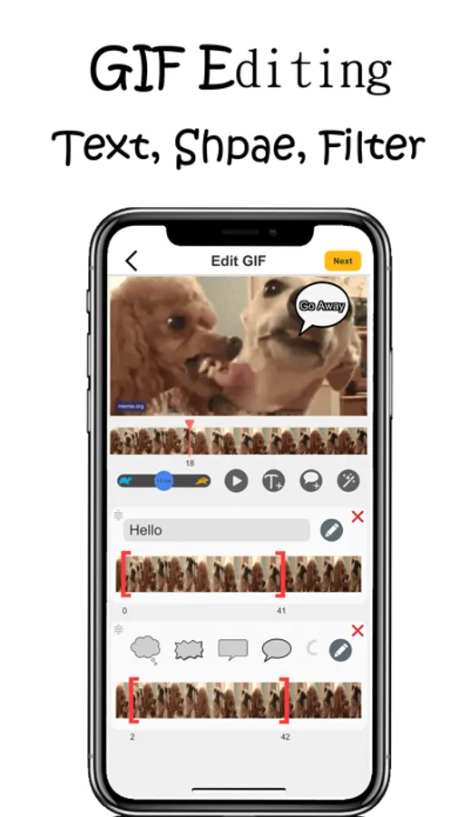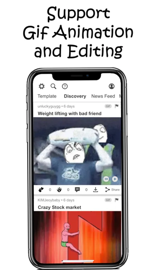 5) Animated GIF support. Not only support to play GIF meme but also you can upload and edit your gif image such as adding different caption texts during different time period.