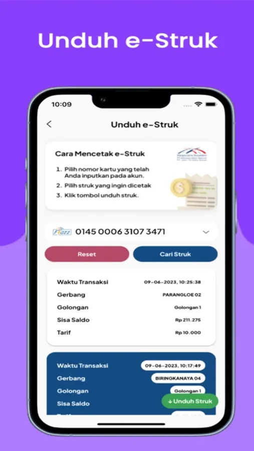 Pada versi awal ini, pengguna dapat mencetak e-struk toll, memantau live cctv di gerbang tol, mengecek tarif toll, memantau lalu lintas disekitar wilayah tol, dan fitur-fitur menarik lainnya.