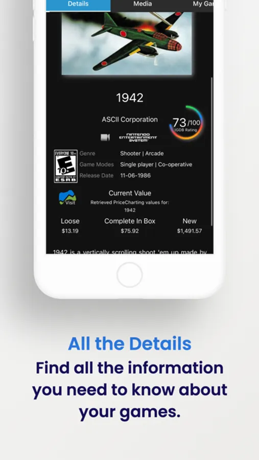 • Extensive game details including value, rating, summary, screenshots, and more!
