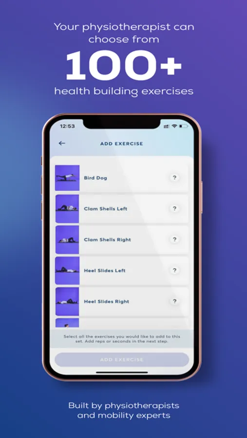 The physiotherapist can prescribe exercises from our library of over 300 exercises, add details for frequency, equipment and a special note when required and send the customised routine to their patient with one click, the patients just have to click on the link!