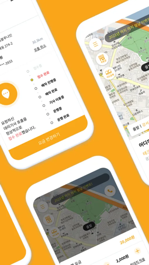 3) 요금 산정: 최적의 로직으로 빠르게 배차될 수 있는 가장 합리적인 가격을 제시합니다. 물론 요금은 스스로 조정할 수도 있습니다.
