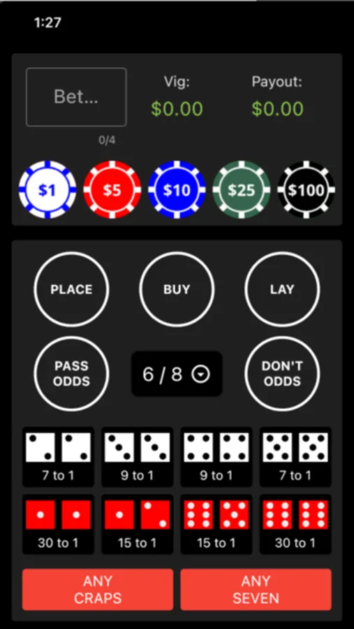 With Craps Calculator, anyone can be a Craps dealer or you can focus on practicing new techniques by saving time on payout calculations.