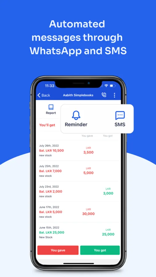 Shopbook App can generate payment reminders in English, Sinhala, and Tamil, so you don’t have to spend time typing out the perfect message or calling them for payments.