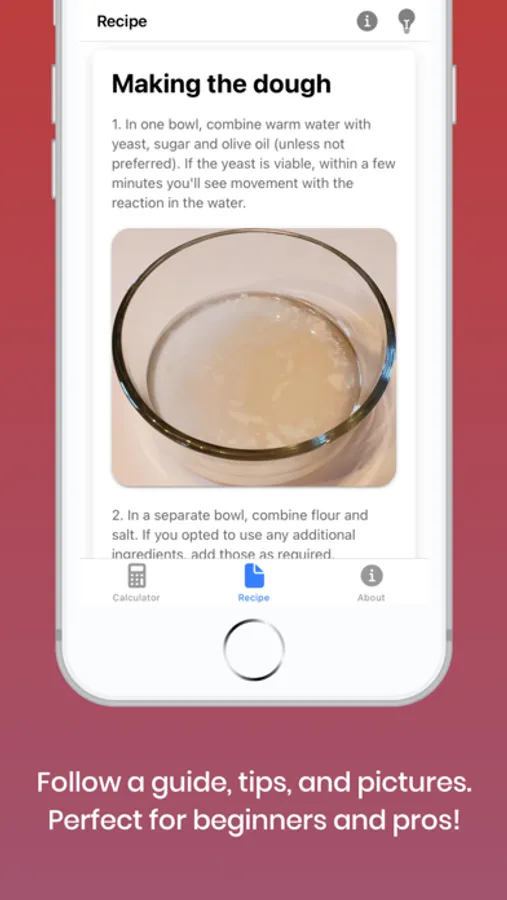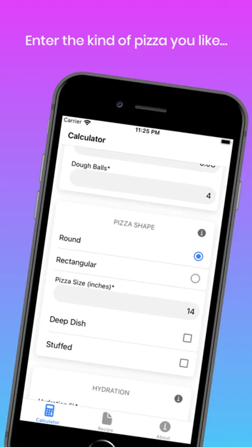 This app takes values like thickness, number, size, weight, additional ingredients, etc, and provides values (by weight) you can use to make pizza dough. This app intends to help bridge the gap between the well-known Pizza Dough Calculator (or Dough Tools) and newcomers to make it more accessible. As such, this app contains: