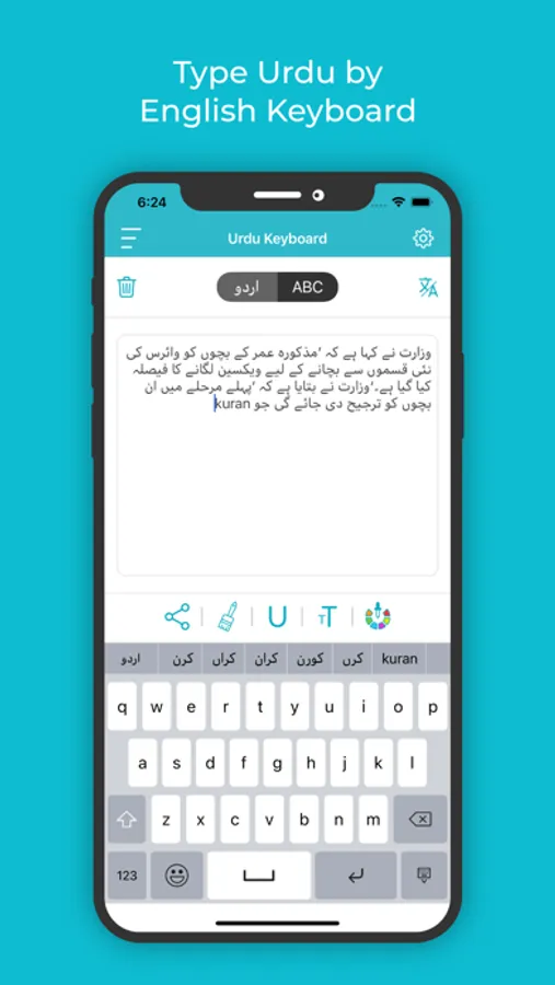 • Changing the font, the colour, underlining features inbuilt in this Urdu keyboard iOS.