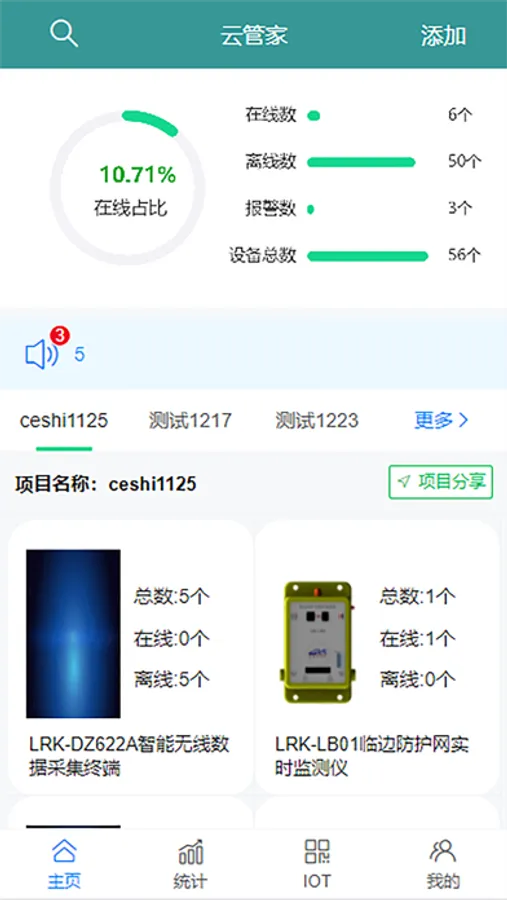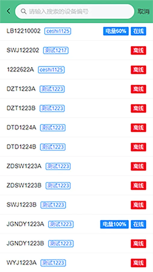 查看设备在线设备情况,以及电量报警设备信息,可以在APP上设置下发指令、转发,查看具体的数据