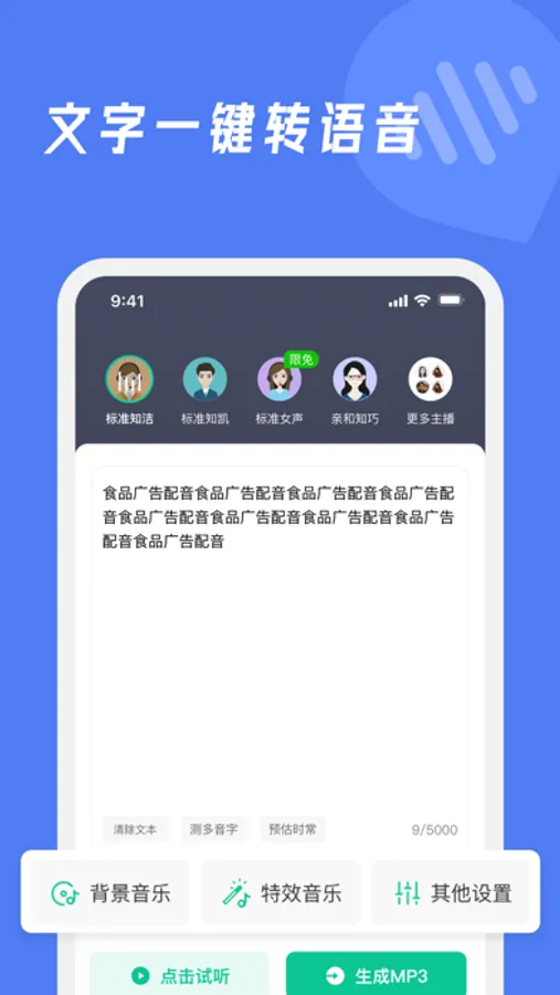 4.多种配音设置:可以加背景音乐、加特效音、多音字指定读音等多种配音设置。