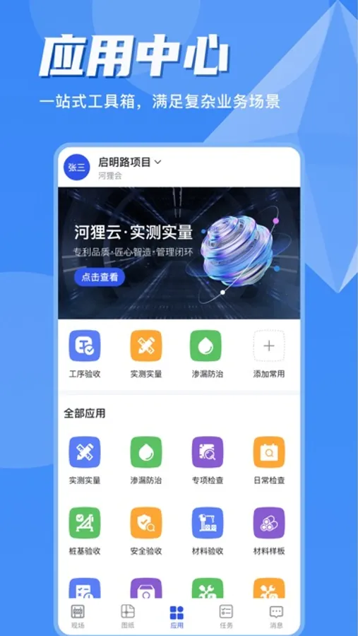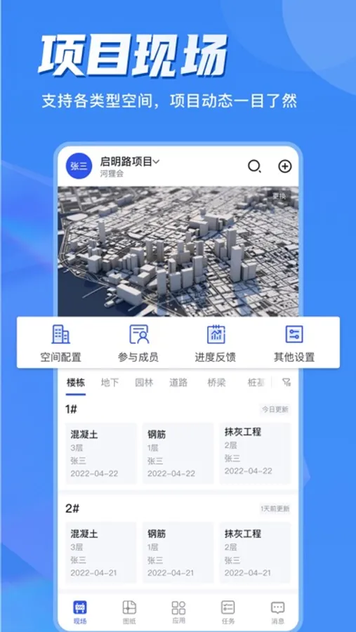河狸云基于图纸施工、协作、资产管理等,覆盖楼栋、地下室、园林、桥梁、道路等多项工程场景,使用者还可自定义空间类型,具有计划、进度、验收、整改等功能,为行业人群提供省钱、省时、省心、省事的工程数字化服务。