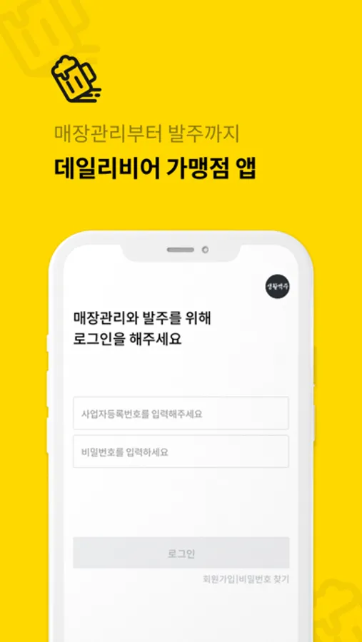 가맹점 회원은 회원가입을 완료한 후 데일리비어 본부의 승인이 완료되면 발주 관리를 진행할 수 있습니다.