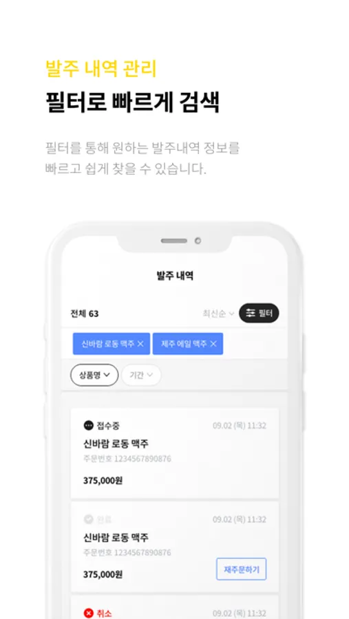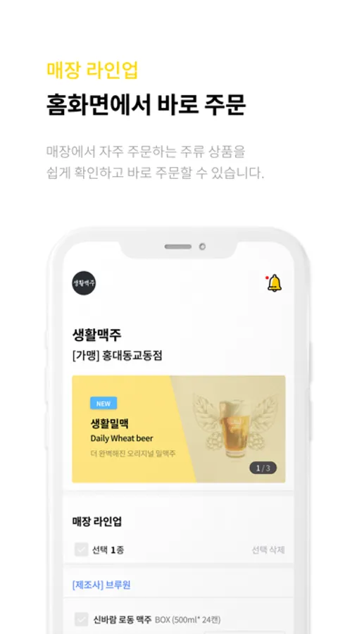 각 가맹점의 맥주 라인업을 추가해 자주 주문하는 주류를 관리할 수 있습니다.