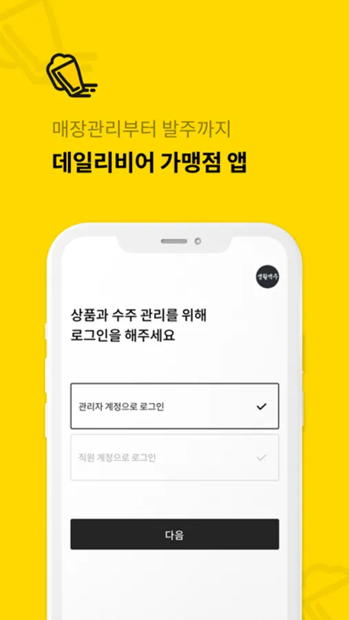 데일리비어 본부에서 전달받은 관리자 계정으로 로그인이 가능합니다.