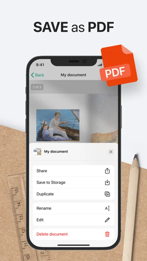 Save the new file anywhere you need on your device and access it anytime with any other app but also with Scanner Plus once again to adjust the PDF file, passage or image for the situation you need.