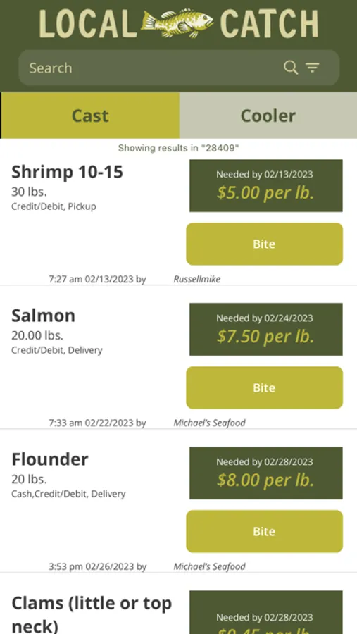 Connecting individuals and businesses inside the commercial fishing industry through an easy to use app. This unique one of a kind app provides an innovative way to buy and sell fresh local seafood. Know who, when, and where your fresh local seafood was caught or acquired. On the selling side, connect with tons of buyers wholesale or retail to keep fresh seafood moving to its end consumer.