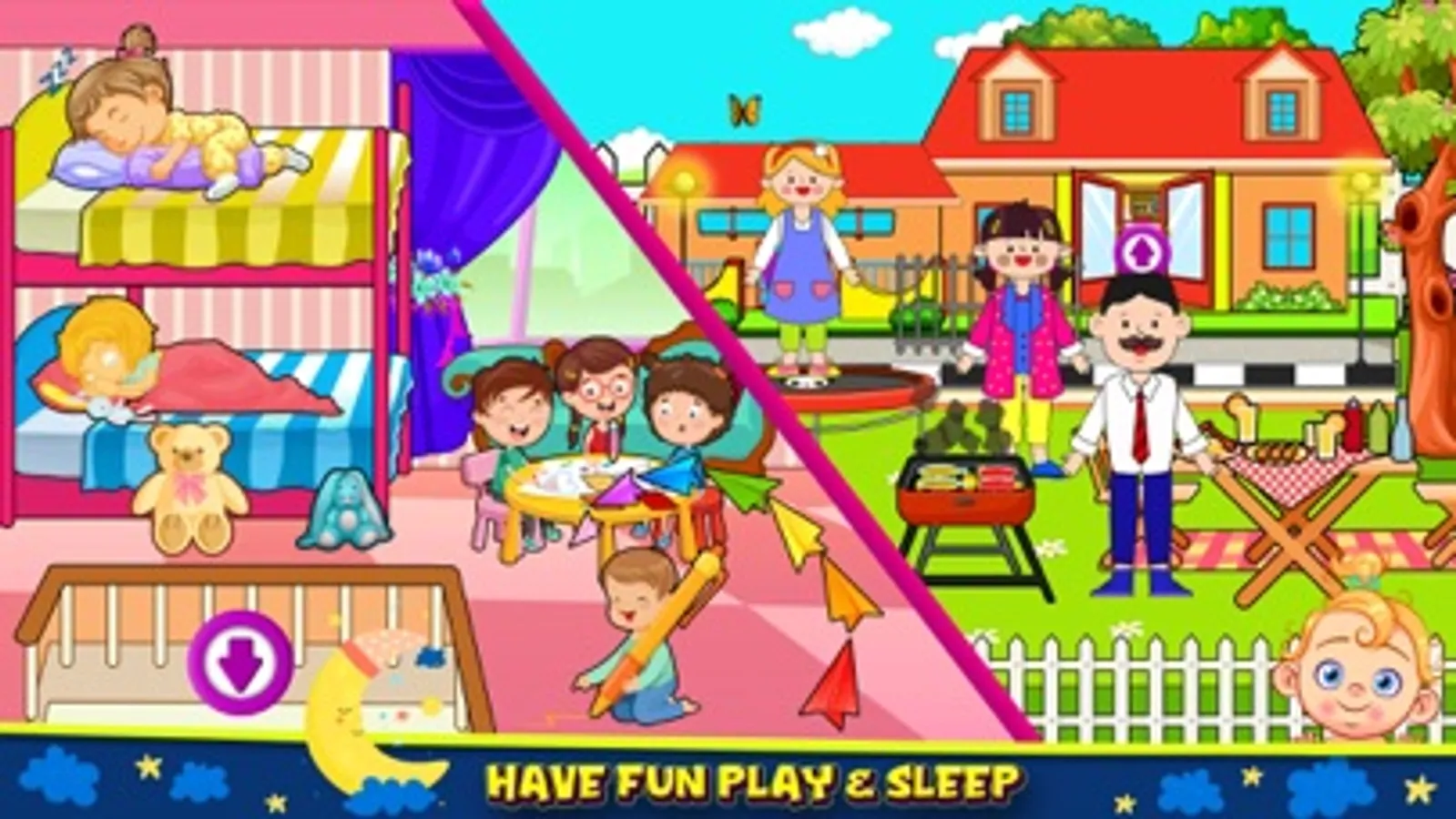 Come and have fun in this incredible fun digital pretend town family dollhouse. Here you get to mollify your own dollhouse and become the greatest dollhouse designer in town. There are many dolls roleplay pretend games to choose from, have Christmas decorations at your city dollhouse, or decorate for Halloween. Perform many activities in your dream home. Find many magical fantasy surprises at your home. Unbox presents, magic, and surprises. Make new friends, role play to perform many activities such as cleaning, singing, paint and cooking for friends and family. Shower the Christmas magic for all your friends from the town & city and craft your own dream life. Have the decorations for your friends and family in your own dolls' family life story and create your dream townhouse.