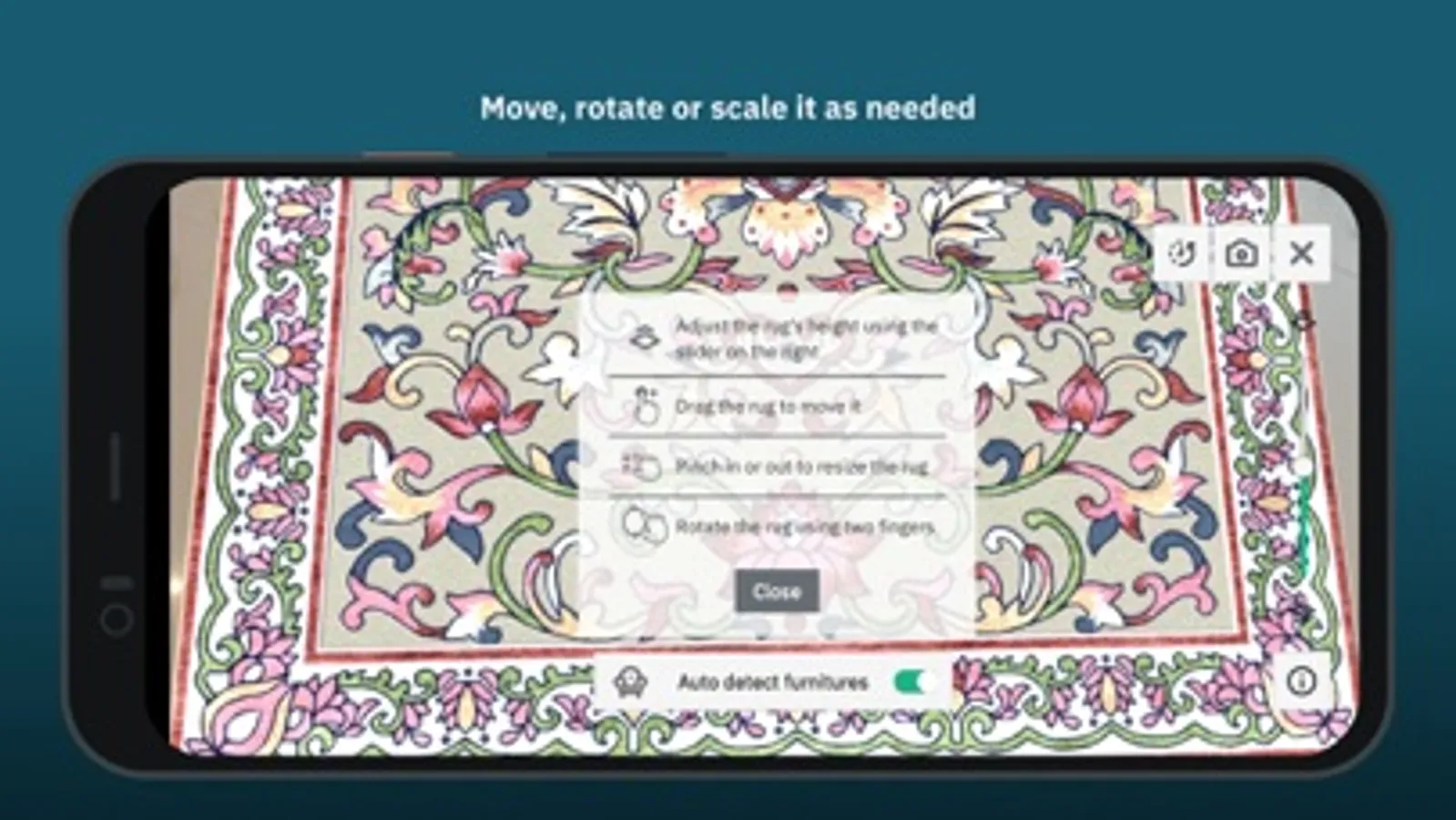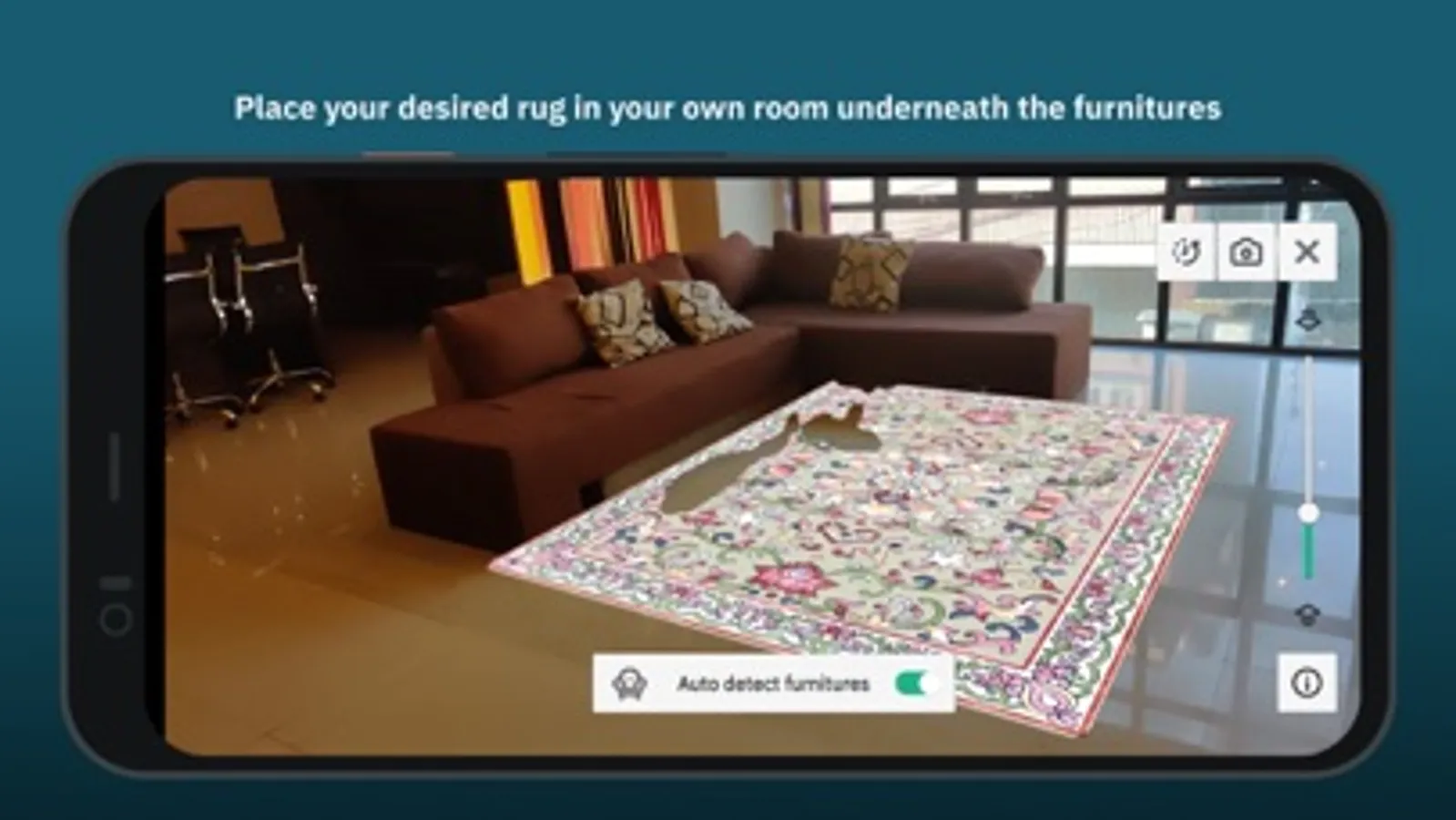 Use augmented reality to place rugs in your room and decide the perfect fit