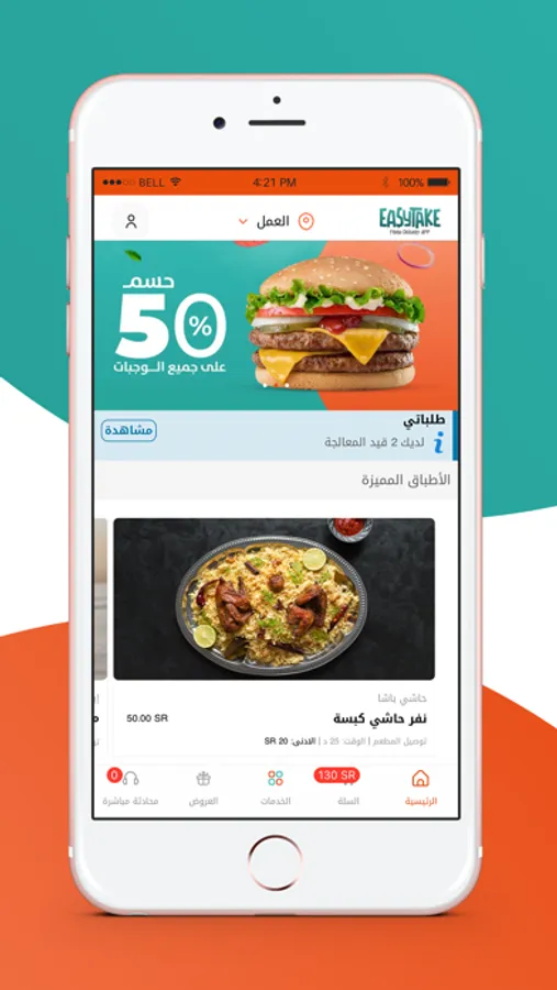 في أي وقت تشعرون بالجوع، ما عليكم إلا أن تدخلوا لتطبيق إيزي تيك وطلب وجبتكم المفضلة.