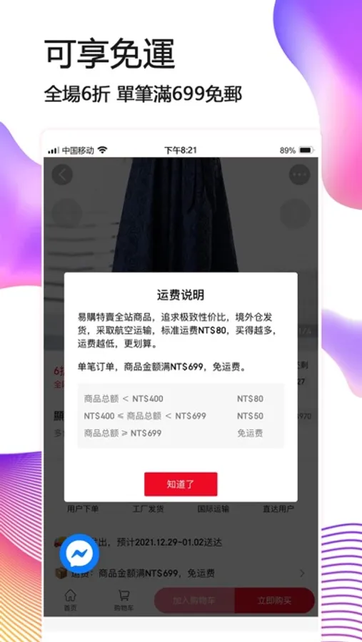 單筆訂單,商品金額滿NT$799,即可免運費;