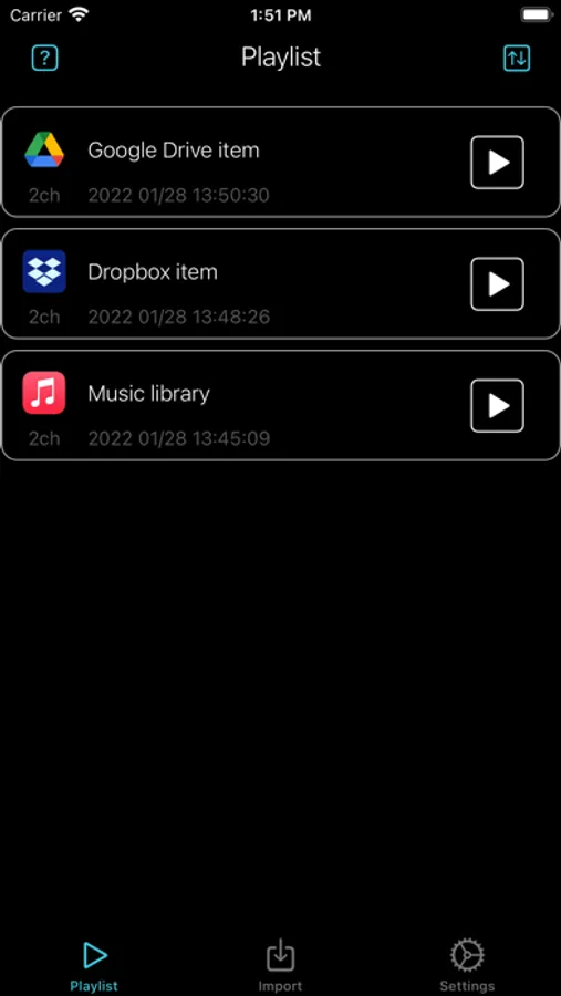 You can import sound sources from the Music app, Google Drive, Dropbox, iCloud Drive.