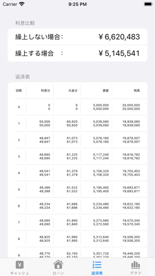 毎月の収入を設定することで、返済額を引いた貯蓄の推移も計算できます!