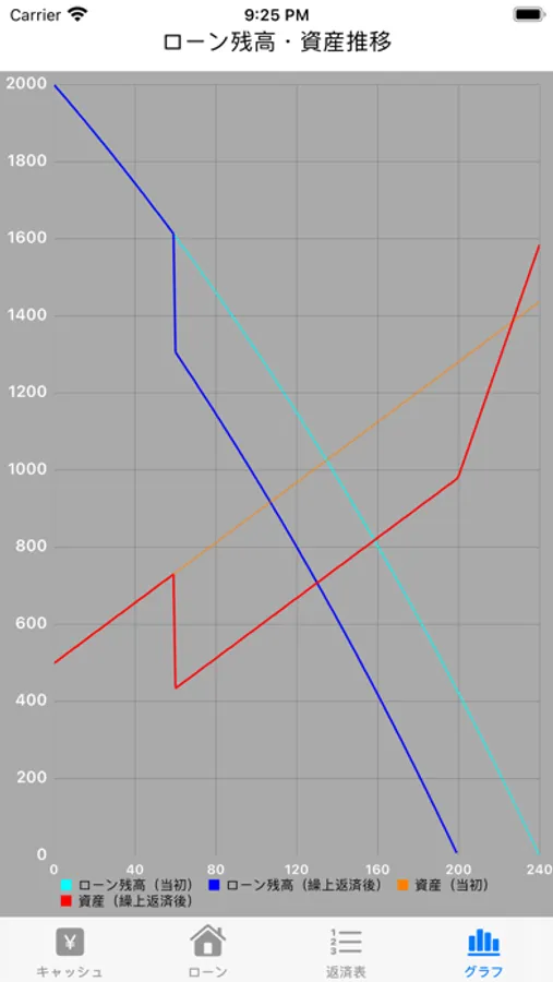 さらに、グラフ表示で繰り上げ返済がいつ頃に回収できるかが簡単に分かります!