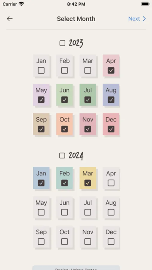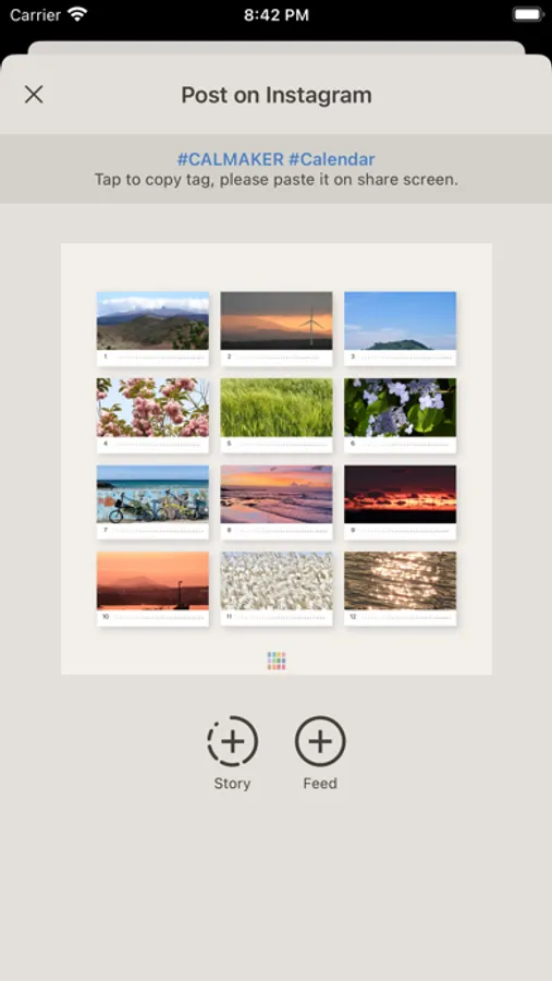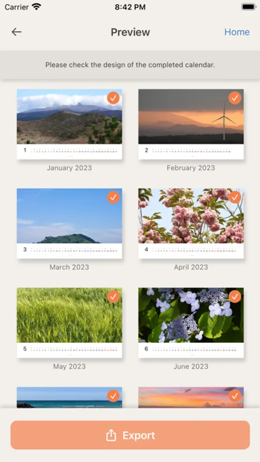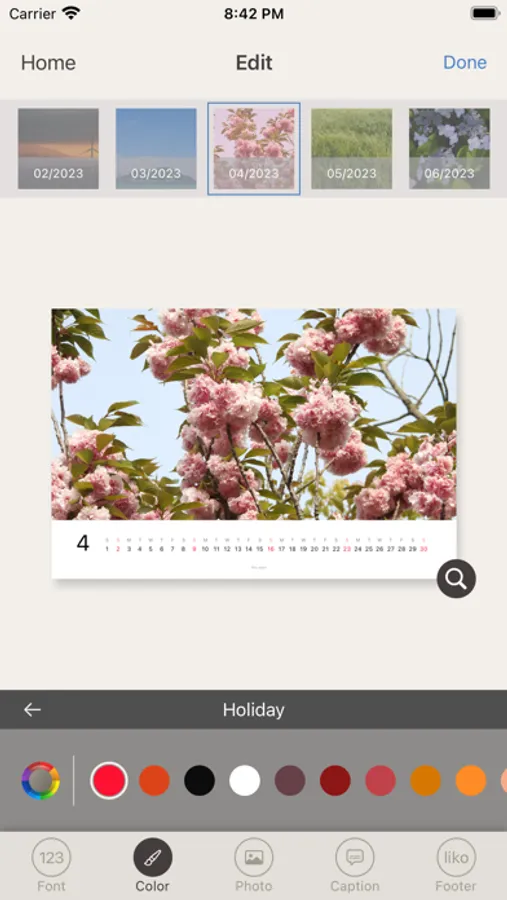 Choose a calendar template, font, background color, text color, photo description and footer.