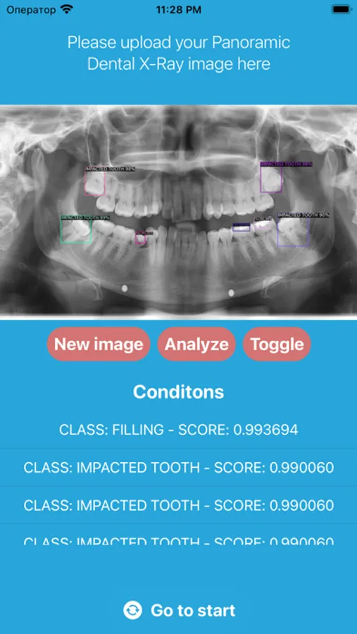 DentalScan, LLC. is developing a Digital Health Application - DentalScanner. We are employing (X-Ray) Medical Image AI analytics to provide FREE X-Ray dental image analytics. Dental Scanner analyzes panoramic dental X-ray images and shows the dental conditions that is in the picture.