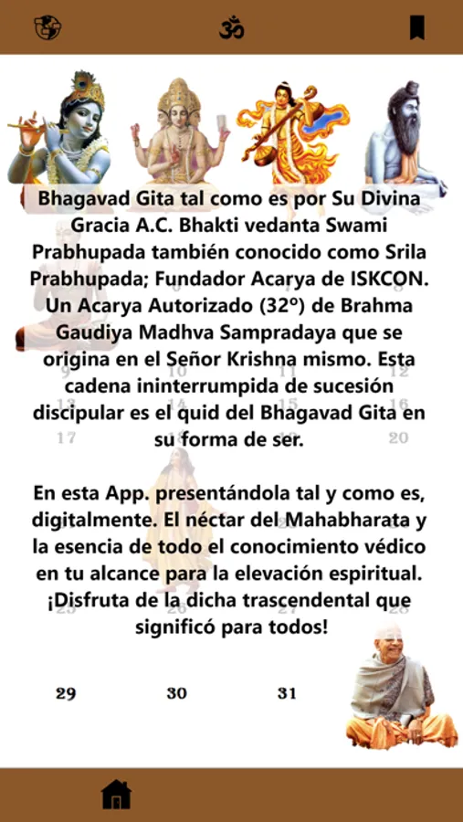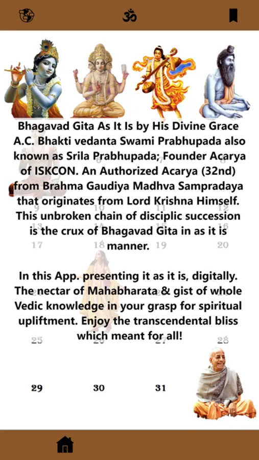 Lord Sri Krishna The Supreme Personality of Godhead personally advented for the welfare of mankind as to revive diminishing connection between Soul & Supersoul, 5000 years ago. His welfare kept intact in the form of Bhagavad Gita (Song of God). His Divine Grace Swami Prabhupada (Founder of ISKCON) made immense contribution to mankind by delivering Bhagavad Gita in As It Is manner so that we will able to understand the actual Message of God. We are fortunate as to not misled by unscrupulous Writers whom constantly adulterating the real essence of Bhagavad Gita. Via this App, I am taking pleasure in presenting Bhagavad Gita As It Is in digital format & in 5 major languages. Enjoy the unlimited spiritual bliss that will be unlocked once one embraces The Bhagavad Gita As It Is. Thank You