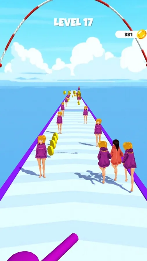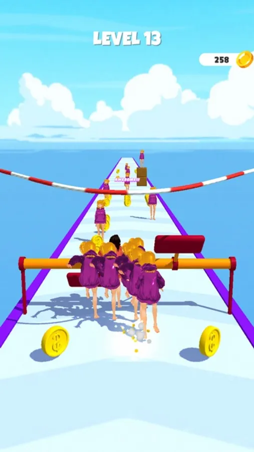 Gather as many friends as you can. You can only get rid of the obstacles and the constantly spinning rope by jumping. The more people you collect, the more points you get at the end of the level. Be careful not to trip over the rope and avoid obstacles, or you may suddenly be alone.